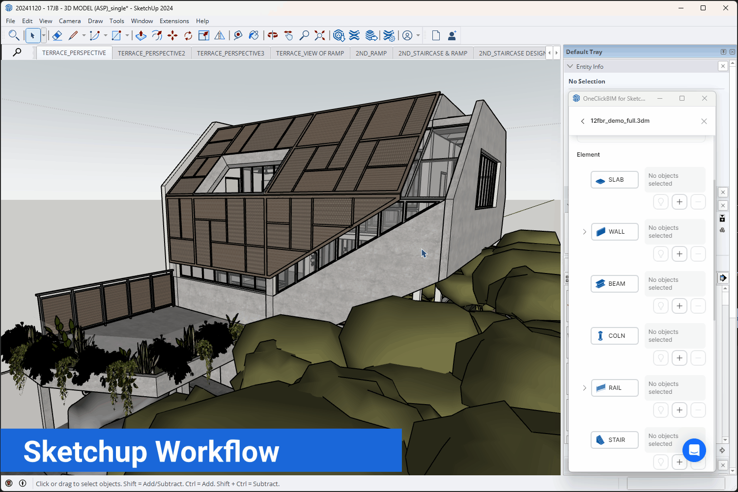 OneClickBIM is a cloud-based CAD-to-BIM automation platform that transforms raw geometry from Rhino or Sketchup into structured, compliant BIM models. It streamlines modelling, documentation, collaboration, and regulatory submissions — all in one place.