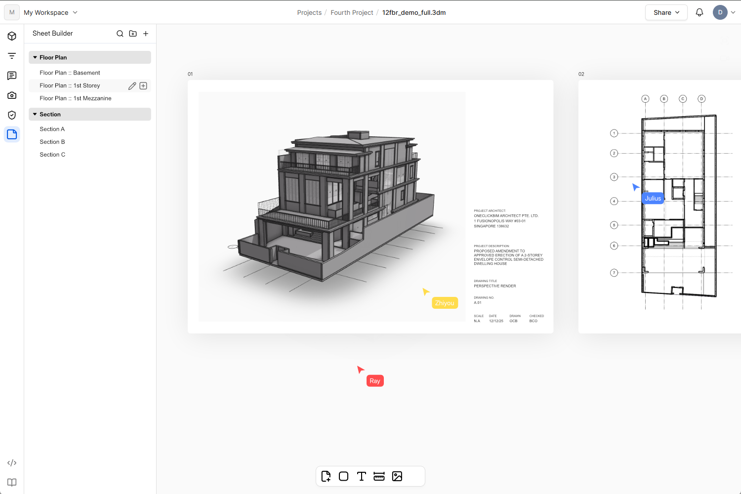 A central space where architects, engineers, and contractors collaborate effortlessly. Models stay synchronised, feedback is captured in context, keeping the entire project aligned from concept to submission.